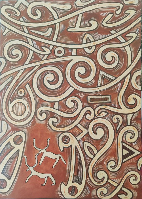 Tabloul intitulat Calea Catre Sine face parte din categoria picturilor abstracte si este o lucrare de arta originala, semnata de catre artistul Trofin Elena Madalina. Acest tablou a fost pictat in anul 2018 iar pictorul a utilizat pastel pe hartie. Pictura masoara 20 x 40 centimetri si este disponibila spre vanzare online la pretul de 300 LEI.