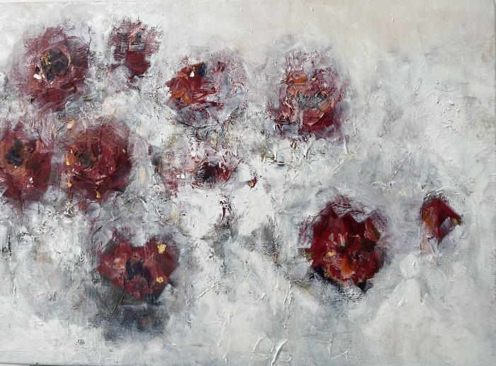 Tabloul intitulat Flori Sub Zapada face parte din categoria picturilor abstracte si este o lucrare de arta originala, semnata de catre artistul Paunita Moldovan. Acest tablou a fost pictat in anul 2020 iar pictorul a utilizat ulei pe panza. Pictura masoara 70 x 50 centimetri si este disponibila spre vanzare online la pretul de 450 LEI.