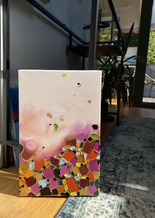 Tabloul intitulat Butterflies 01 face parte din categoria picturilor abstracte si este o lucrare de arta originala, semnata de catre artistul Dobrogeanu Mihaela. Acest tablou a fost pictat in anul 2023 iar pictorul a utilizat acrilic pe panza. Pictura masoara 60 x 60 centimetri si este disponibila spre vanzare online la pretul de 700 LEI.