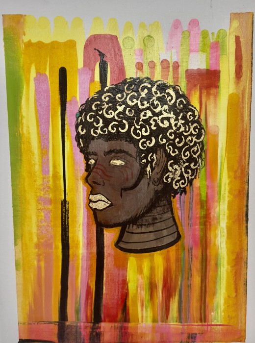 figurina din foita de aur, panza pe sasiu, gata de agatat, nu necesita rama.