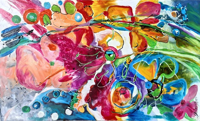 Tabloul intitulat Jungle face parte din categoria picturilor abstracte si este o lucrare de arta originala, semnata de catre artistul Vadavoiu Daniela. Acest tablou a fost pictat in anul 2023 iar pictorul a utilizat acrilic pe panza . Pictura masoara 100 x 80 centimetri si este disponibila spre vanzare online la pretul de 1500 LEI.