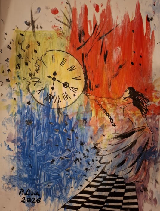 Tabloul intitulat Opriți Timpul! face parte din categoria picturilor abstracte si este o lucrare de arta originala, semnata de catre artistul Daniliuc Popescu Livia Monica. Acest tablou a fost pictat in anul 2026 iar pictorul a utilizat acrilic pe panza . Pictura masoara 30 x 40 centimetri si este disponibila spre vanzare online la pretul de 0 LEI.