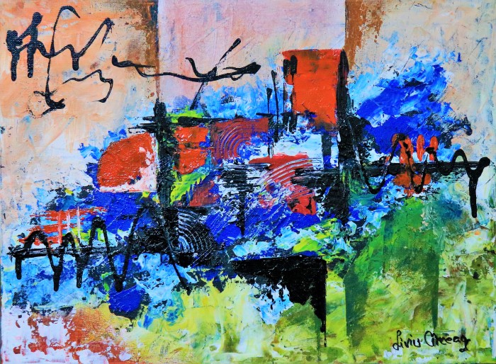 Lucrare realizata in acrilic pe panza. Pictura nu este pe sasiu. Dimensiunile(120/80 cm) reprezinta suprafata panzei, intins - 110/70 cm.