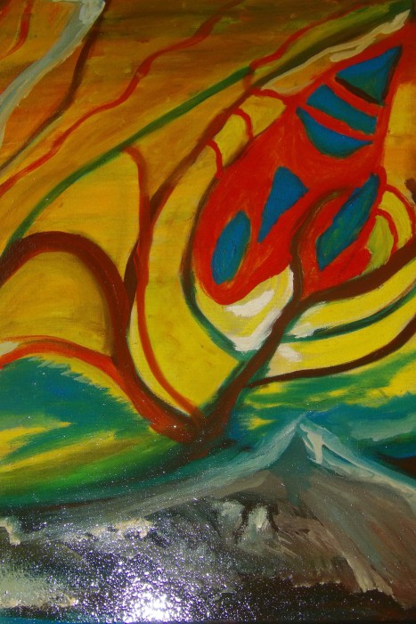 Lucrare realizata in acrilic pe panza, tehnica cutit. Pictura nu este inramata, nu are sasiu. Dimensiunile reprezinta suprafata pictata.