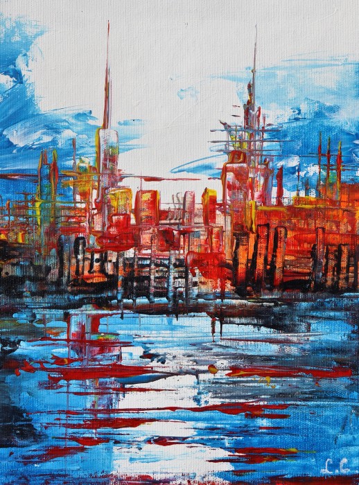 Lucrare realizata in acrilic pe panza intinsa pe sasiu. Nu necesita inramare.