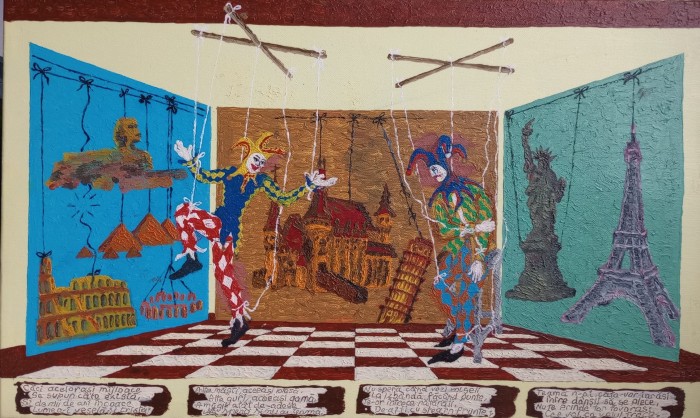 Concept artistic: Lupta dualităţii. Relief sculptural tactil (High Relief) modelat manual. Exemplar unicat. Pastă de modelaj densă, culori acrilice profesionale și lac de protecție (varnish). Margini pictate, pânză de bumbac pe cadru de lemn. Nu necesită ramă. Se livrează cu certificat de originalitate şi fişă tehnică.