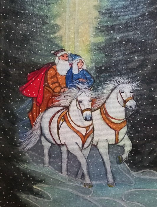 Tabloul este realizat în linie de tuș și tuș combinat cu apă ce oferă senzația de acuarelă. Este pe hârtie și vine înrămat.