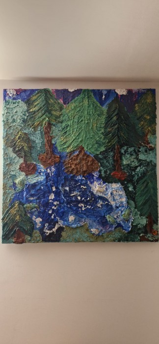 Tabloul este realizat pe panza in intinsa pe sasiu,marginile sunt si ele pictate in continuarea lucrarii. Transportul prin curier este inclus in pret.