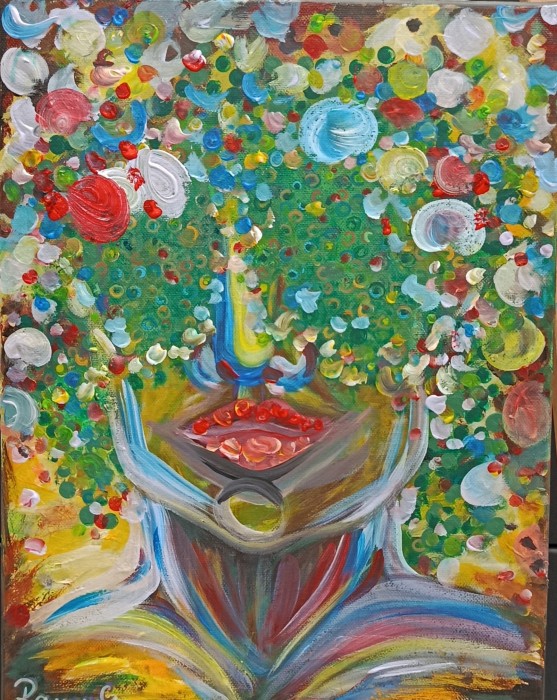 L’air du temps Portret realizat în tehnica mixtă - lucrat în ulei, textil și obiecte vintage reciclate în mod creativ (found object art) : diapozitive și ceas vechi de mână. Atmosfera este retro -contemporană, tabloul îmbină farmecul trecutului cu notele actuale, serenitatea cu o ușoară nostalgie, însă starea generală radiază pace sufletească. Obiectele reale încorporate accentuează sentimentul de trecere a timpului, dar în același timp și senzația de veșnicie prin însăși prezența lor într-o creație ce transcede timpul. Verdele smarald folosit în fundal simbolizează rafinamentul, sănătatea, renașterea și speranța. - 80/60 cm - ramă “infinity” ( marginile canvasului sunt pictate, nu necesită înrămare ) - Certificat Autenticitate