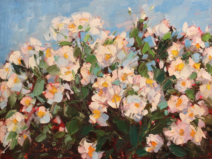 Tabloul intitulat Abstract Floral face parte din categoria picturilor cu flori si este o lucrare de arta originala, semnata de catre artistul Bissinger Elena. Acest tablou a fost pictat in anul 2021 iar pictorul a utilizat ulei pe panza. Pictura masoara 90 x 60 centimetri si este disponibila spre vanzare online la pretul de 0 LEI.