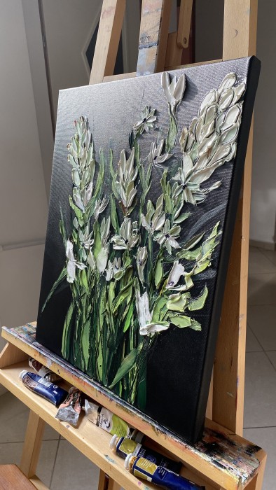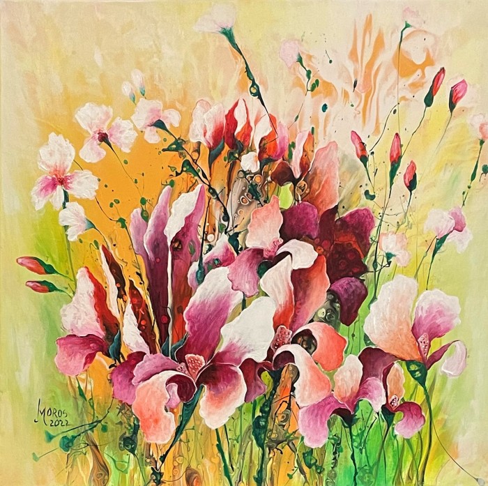 Tabloul intitulat Irisi face parte din categoria picturilor cu flori si este o lucrare de arta originala, semnata de catre artistul Oros Mariana. Acest tablou a fost pictat in anul 2022 iar pictorul a utilizat acrilic pe panza. Pictura masoara 60 x 60 centimetri si este disponibila spre vanzare online la pretul de 850 LEI.