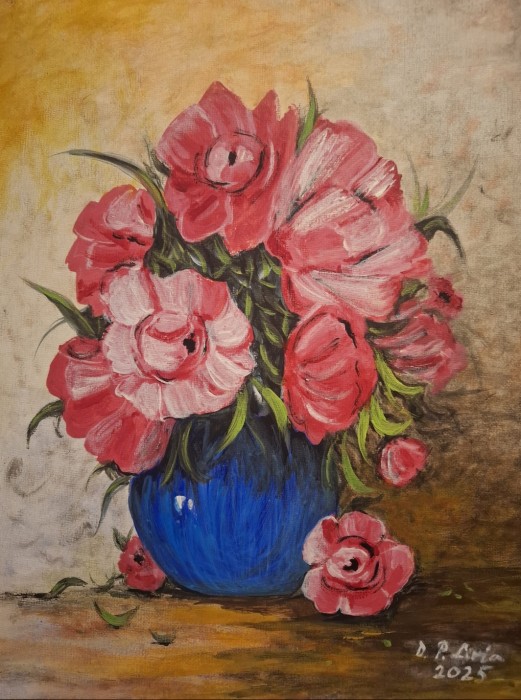 Tabloul intitulat Flori De Vara face parte din categoria picturilor cu flori si este o lucrare de arta originala, semnata de catre artistul Vataman Adina. Acest tablou a fost pictat in anul 2024 iar pictorul a utilizat acuarela pe hartie . Pictura masoara 14 x 21 centimetri si este disponibila spre vanzare online la pretul de 150 LEI.