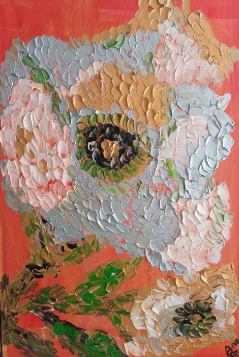 Tabloul intitulat Floare Metalica Abstracta Mare face parte din categoria picturilor cu flori si este o lucrare de arta originala, semnata de catre artistul Bals Ana-Cristina. Acest tablou a fost pictat in anul 2025 iar pictorul a utilizat acrilic pe panza . Pictura masoara 60 x 100 centimetri si este disponibila spre vanzare online la pretul de 0 LEI.