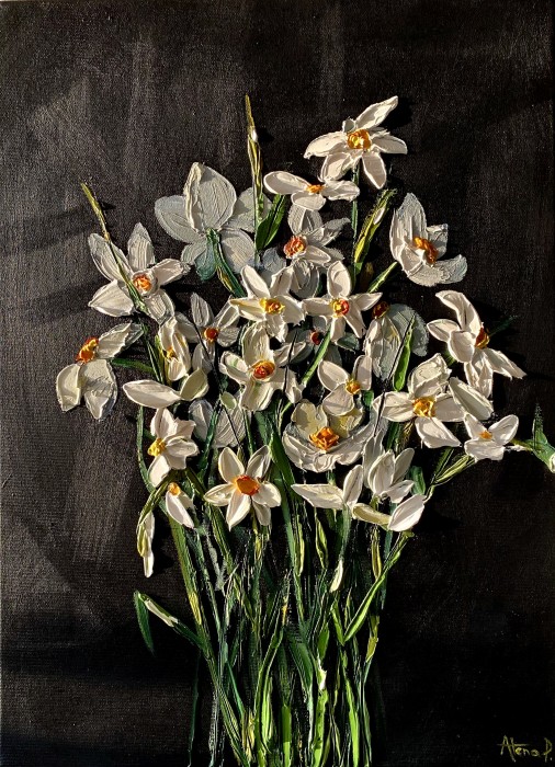 Tabloul intitulat Flori De Primavara face parte din categoria picturilor cu flori si este o lucrare de arta originala, semnata de catre artistul Popei Ioan. Acest tablou a fost pictat in anul 2025 iar pictorul a utilizat ulei pe panza. Pictura masoara 40 x 50 centimetri si este disponibila spre vanzare online la pretul de 1750 LEI.