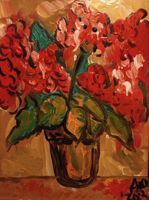 Tabloul intitulat Frumusete face parte din categoria picturilor cu flori si este o lucrare de arta originala, semnata de catre artistul Anton Daniela. Acest tablou a fost pictat in anul 2024 iar pictorul a utilizat acrilic pe panza . Pictura masoara 50 x 70 centimetri si este disponibila spre vanzare online la pretul de 1500 LEI.