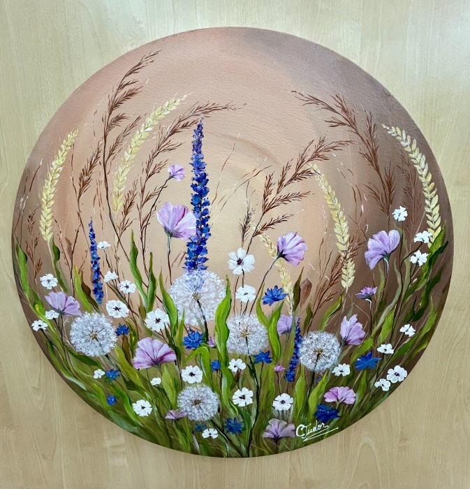 Tabloul intitulat Flori De Camp face parte din categoria picturilor cu flori si este o lucrare de arta originala, semnata de catre artistul Popei Ioan. Acest tablou a fost pictat in anul 2024 iar pictorul a utilizat ulei pe panza. Pictura masoara 40 x 50 centimetri si este disponibila spre vanzare online la pretul de 1700 LEI.