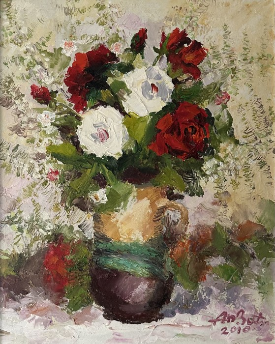 Tabloul intitulat Buchet De Toamna face parte din categoria picturilor cu flori si este o lucrare de arta originala, semnata de catre artistul Barna Roxana. Acest tablou a fost pictat in anul 2025 iar pictorul a utilizat ulei pe panza. Pictura masoara 50 x 40 centimetri si este disponibila spre vanzare online la pretul de 750 LEI.