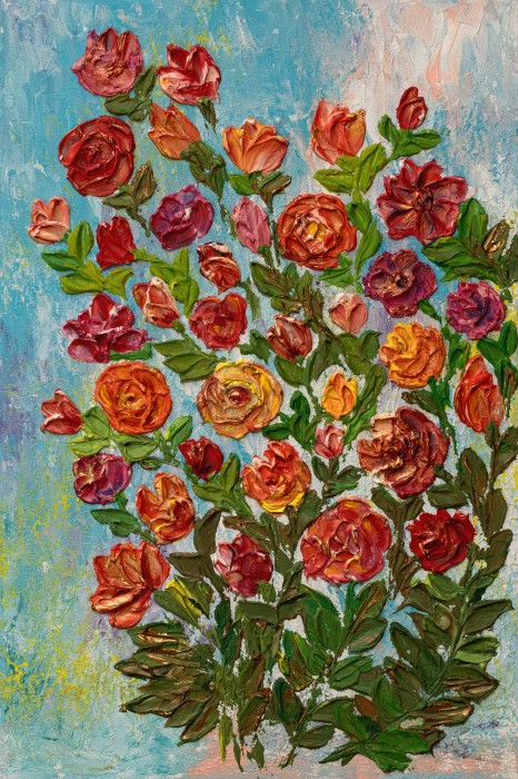 Pictura in relief la care s-a utilizat pasta de structura, culori acrilice si lac de protectie.