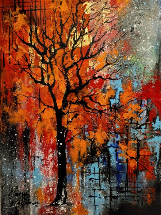 O natură statică impresionistă, definită prin tehnica impasto și tușe viguroase de pensula si cuțit, care conferă petalelor albe și galbene o textură tridimensională și o dinamică debordantă. Contrastul dintre galbenul solar, oranjul vibrant și fundalul turcoaz creează o armonie complementară plină de lumină, amintind de prospețimea unei zile de martie. Transmite vitalitate, speranță și bucuria simplă a renașterii naturii, transformând un buchet clasic într-o explozie de energie vizuală și optimism. Datorită formatului pătrat și dimensiunilor, este ideală pentru un colț de lectură, o bucătărie cochetă sau un hol luminos, aducând un strop de primăvară permanentă. Panza intinsa pe sasiu din lemn, neinramata, gata de agatat, marginile pictate, nu necesita rama