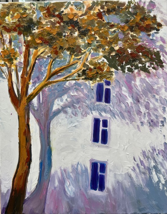 În această pictură, am surprins un peisaj estival în care o biserică aflata la margine de sat, într-o vară toridă. Atmosfera călduroasă este sugerată prin detalii precum vegetația arsă de soare, contrastând cu imaginea impunătoare și liniștită a bisericii, care adaugă o notă de sacralitate și stabilitate în mijlocul naturii aspre. Dealul cu verdeață uscată si case evocă intensitatea verii, iar biserica pare un refugiu spiritual, oferind un punct de calm într-un peisaj dominat de căldura copleșitoare. Paleta caldă accentuează atmosfera aridă și reflectă forța naturii în contrast cu liniștea locului sacru.