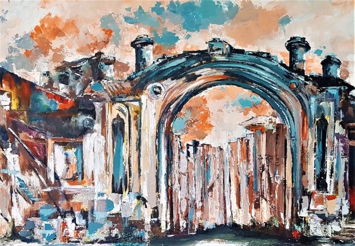 Lucrare realizata in acrilic pe panza, tehnica cutit. Pictura nu este inramata, nu are sasiu. Dimensiunile reprezinta suprafata pictata.