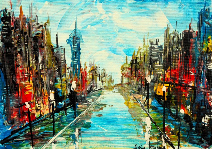 Lucrare realizata in acrilic pe panza intinsa pe sasiu. Nu necesita inramare.