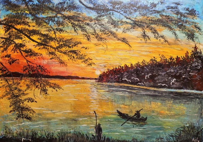 Tabloul intitulat Tranquility face parte din categoria picturilor cu peisaje si este o lucrare de arta originala, semnata de catre artistul Negrea Alina. Acest tablou a fost pictat in anul 2021 iar pictorul a utilizat ulei pe panza. Pictura masoara 80 x 120 centimetri si este disponibila spre vanzare online la pretul de 2500 LEI.