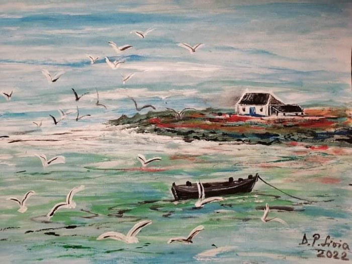 Tabloul intitulat Pe Coasta face parte din categoria picturilor cu peisaje si este o lucrare de arta originala, semnata de catre artistul Daniliuc Popescu Livia Monica. Acest tablou a fost pictat in anul 2022 iar pictorul a utilizat acrilic pe panza . Pictura masoara 30 x 23 centimetri si este disponibila spre vanzare online la pretul de 200 LEI.