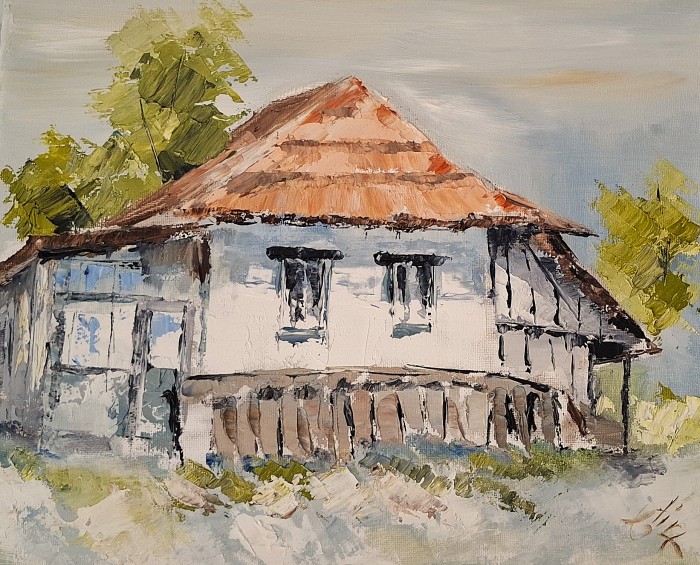 Lucrare realizata in acrilic pe panza, tehnica cutit. Pictura nu este inramata, nu are sasiu. Dimensiunile reprezinta suprafata pictata.