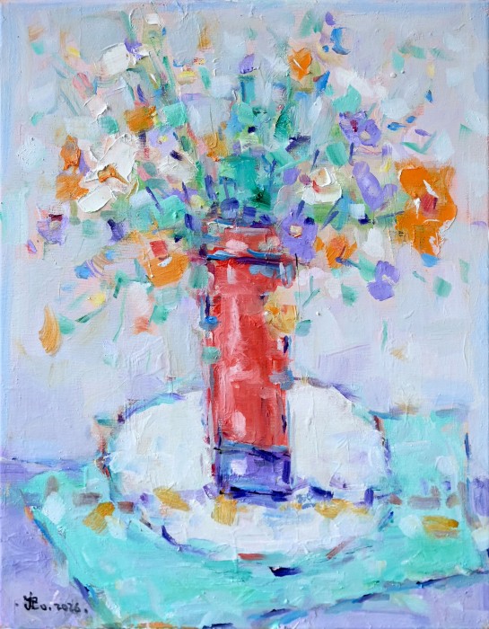 Lucrare realizata in acrilic pe panza, tehnica cutit. Pictura nu este inramata, nu are sasiu. Dimensiunile reprezinta suprafata pictata.